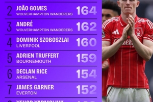 本赛季英超夺回球权榜:安德森259次断层领先,索博160次第四