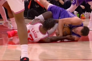 GIF-东契奇与伊森倒地争球