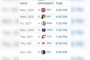 最后11场对手依次是:活塞、步行者、篮网、奇才、骑士、雷霆、独行侠、雷霆、勇士、太阳、爵士。