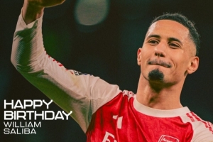体育资讯3月24日讯 今天是阿森纳中卫萨利巴的25岁生日,阿森纳官方社媒为他送上祝福。