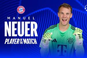 体育资讯04月08日讯 官方消息,诺伊尔当选欧足联评选的皇马vs拜仁全场最佳。本场,诺伊尔完成9次扑救。