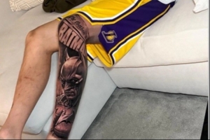 意大利门将多纳鲁马目前效力于曼城,近日他在腿部纹上了蝙蝠侠的图案,这个纹身由纹身师瓦伦蒂诺·鲁索完成。而纹身师在社交媒体上发布了多纳鲁马接受纹身时的照片。