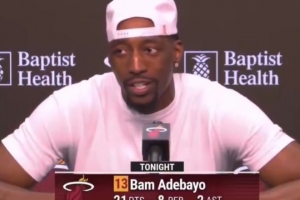 体育资讯3月13日讯 NBA常规赛,热火主场112-105击败雄鹿,阿德巴约赛后接受了媒体采访。